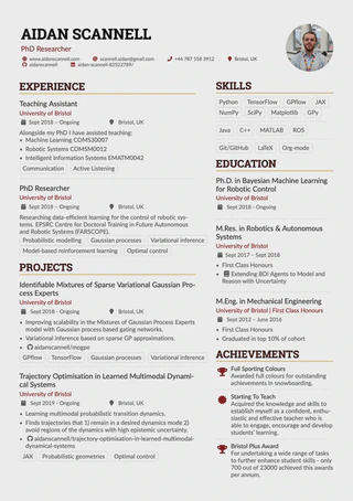 Over the last few years I have been trying to find the best tools for managing my CV/resume. Previously I was maintaining a JSON file that I could export to pdf/html using JSON Resume and HackMyResume. They provide a well structured format (JSON Schema) for storing your CV data and there are a range of themes that you can use to style your CV when exporting to pdf/html. I personally think it’s a great idea and I have been using it for the last couple of years. However, when exporting to pdf/html I found that my CV data was being used slightly differently by each theme, and I ended up managing multiple JSON files; one for each theme I wanted to use! I also struggled exporting to a nicely formatted compact CV, and to be honest, JSON is just a horrible format for humans to work with; you can’t even comment out lines! I would much prefer to manage a YAML or TOML file. I know you can export YAML/TOML to JSON so you could probably quite easily work this into your CV workflow.