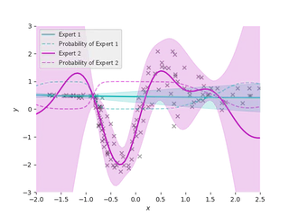 This work derives a novel variational lower bound for the mixture of Gaussian process experts model with a GP based gating network based on sparse GPs.